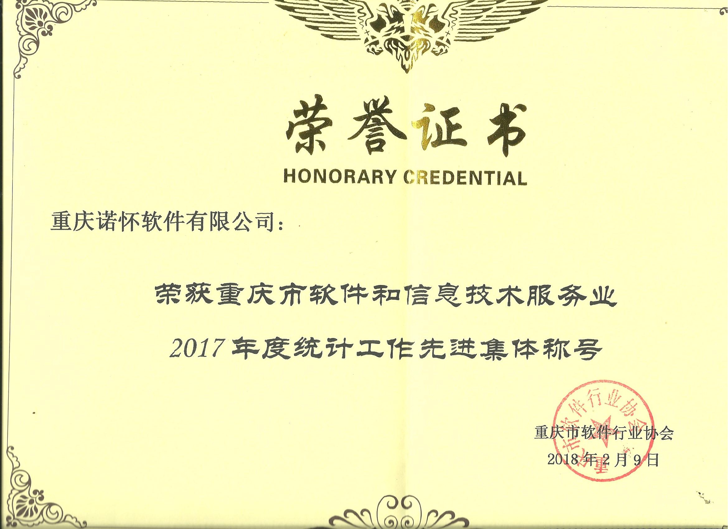 诺怀软件荣获“2017年度统计工作先进集体”荣誉称号
