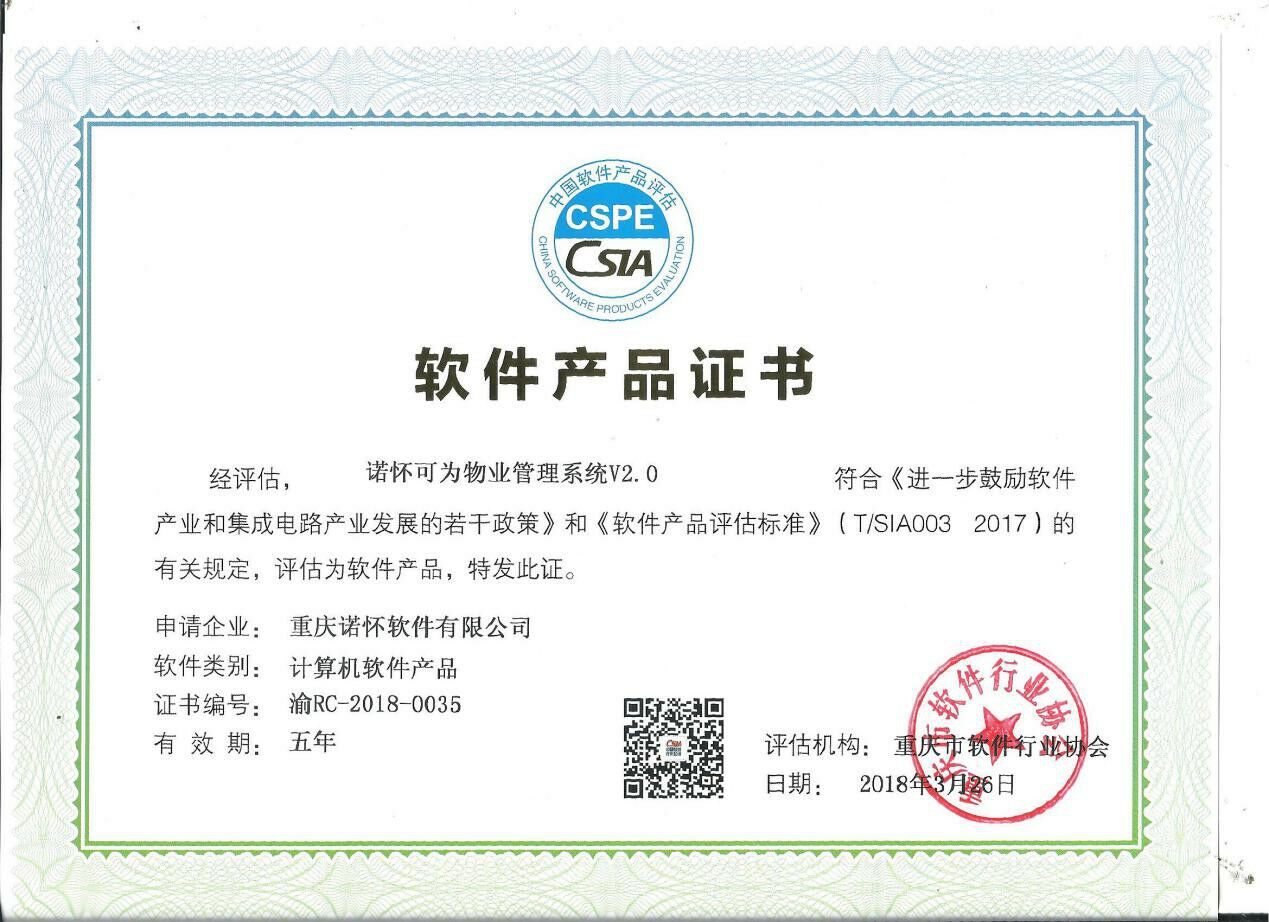 诺怀云物业获得软件产品认证 推动诺怀软件业务能力再升级